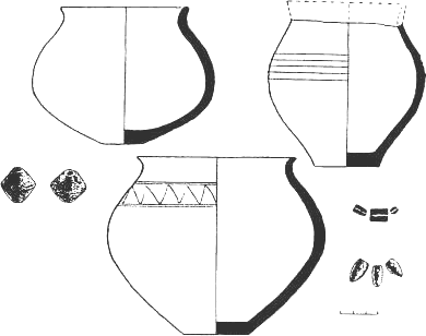 Bildo 6. Ceramikaj ujoj el tombo N 165 (Ĝ-4B) de la bustana tempo, kiuj kopias la formojn de la frua ĝarkutana etapo (la fenomeno de la renaskiĝo de la arkaikaj tradicioj).
