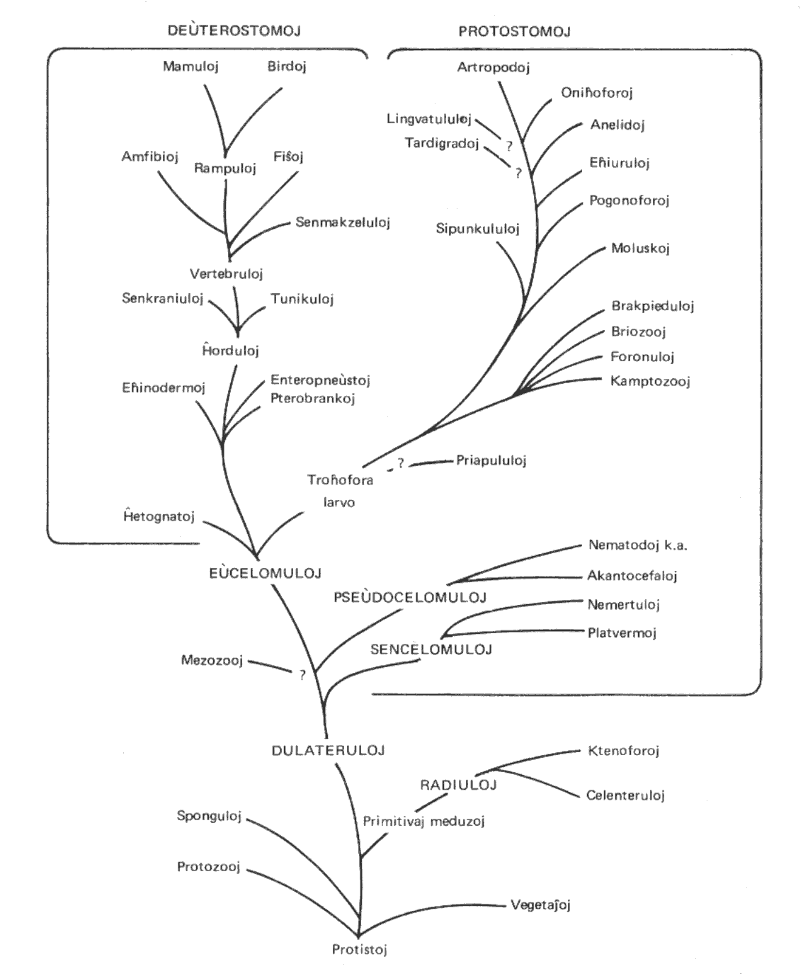 Fig. 18. Skema filogania arbo da la animaloj (nur pli gravaj filonoj)