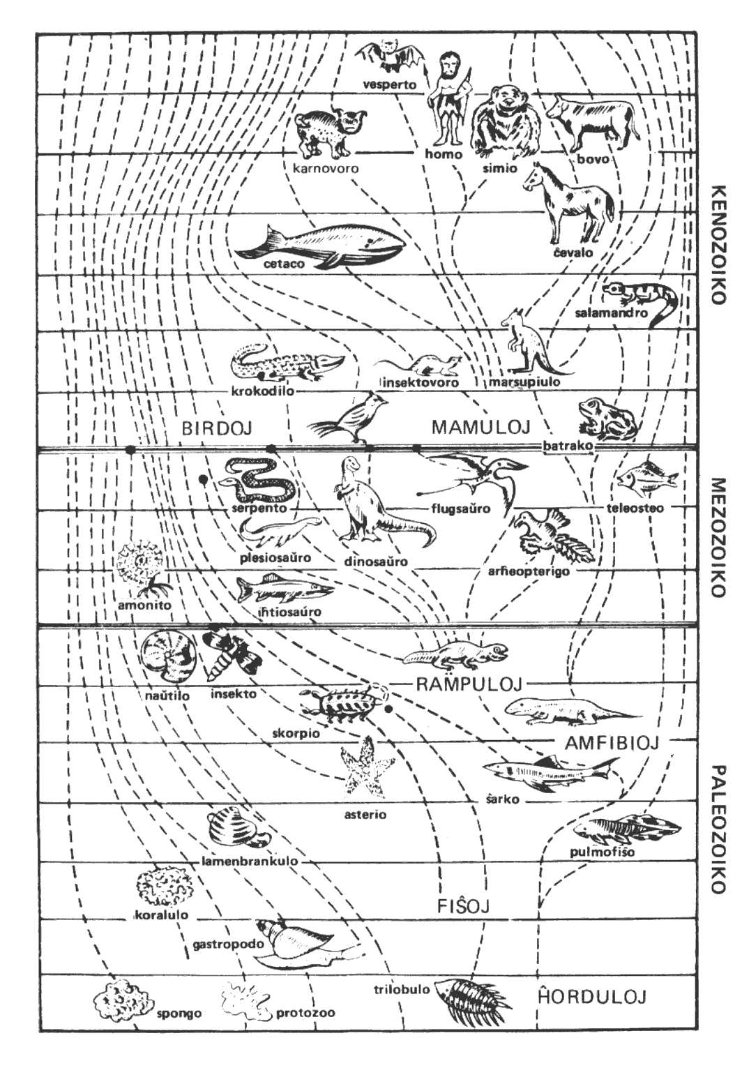 Fig. 17. Evoluo de la animaloj laĹ- la geologiaj eraoj