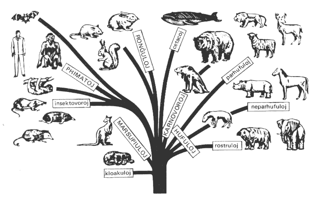 Fig. 19. Filogenia arbo de la ĉefaj ordoj de mamuloj