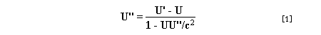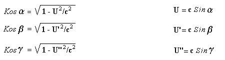 ![]() Se c estas la lum-rapido en vakuo, pro la Speciala Teorio de Relativeco, ni scias ke la rapideco U'' de la objekto W relativa al observanto B, skribita kun bazo en la rapidoj U kaj U' estas: ![]() Pro tio, ke neniu rapido povas superi la lum-rapidon en vakuo, sen perdo de ĝeneraleco ni povas esprimi la rapidojn kiel frakcioj de la lum-rapido, tiel ke eblas uzi angulaj funkcioj, jene: ![]() Laŭ tiuj difinoj de alfa, beta kaj gamma, validas la sekvantaj rilatoj: ![]() kaj aplikante tion a la rilato [1] ni atingas: ![]() Kaj, pro la fakto ke: Do, anstatŭiginte kaj transforminte, ni sekve atingas: ![]() Nu, ankaŭ veras ke: Do, anstataŭiginte ni alvenas al: ![]() Pensu ni nun pri eta ero de maso apartenanta al la fluo. Tiu ero posedas, laŭ mezuroj de A, longo delta de XA kaj maso delta de M'. Do, la observanto A povas difini la linea denseco de la fluo kiel: ![]() Nu, se delta de M estas la maso en kvieteco (kiel mezurita far B) de la ero de fluo, ni scias ke la maso delta de M' laŭ mezuro far A rilatiĝas kun tiu maso en kvieteco, laŭ Speciala Relativeco, jene: ![]() do, la linea denseco por A ankaŭ estas: ![]() Krome, pro la longo-kurtigo de Lorentz, la longo delta de XA laŭ mezuro de observanto A rilatiĝas kun la koresponda longo en kvieteco delta de XB (laŭ mezuro far B) per la esprimo: Kaj do, esprimita per la kvietecaj maso kaj longo de la flu-ero, laŭ mezuro far B, la linea denseco mezurita far A estas: ![]() Kaj pro tio ke la linea denseco mezurita far B, kvieta relative al la flu-ero, estas: ![]() Do, la rilato inter la lineaj densecoj mezuritaj far A kaj far B estas: ![]() Konsideru ni nun la gravitan kampon kreita far la maso kiun A perceptas kiel "fluo". Se ni supozas ke la longo de tiu maso en la direkto de U estas multege pli granda ol la distanco r, ni vidas ke la intenso de la gravita kampo NB, je la distanco r, mezurita far la observanto B, kvieta relative al tiu maso, estas tia kaŭzita far maso de grandega longo kaj eteta dikeco: ![]() kie G estas la Gravita Konstanto Nu, relative al observamnto B, la objekto W, de kvieteca maso m, posedas maso: ĉar W moviĝas relative al B kun rapido U''. Laŭ tio-ĉi, la forto TB sur m'' kaŭzita far la kvazaŭlineeca distribuo de materio, estas, laŭ mezuro far B: kio egalas al: Kaj simile, en la inercia referenca sistemo de A, la intenso de la gravita kampo NA, je la distanco r, havas amplekson: kiu, anstatŭigante laŭ la rilato [3] devenas: kaj, pro tio ke relative al A, la maso de W estas m', la gravita forto sur W, mezurita far A estas: ![]() kaj ĉar la maso m', rilatiĝas kun la kvieteca maso jene: ni alvenas al: ![]() kio, pro la rilato [4] facile transformiĝas en: kio, pro la rilato [2] egalas al: Kaj pro la trigonometria malegaleco: ni facile konkludas ke que validas la sekvanta malegaleco inter la fortoj sur W mezuritaj far A kaj far B: El la rilato [6] ni atingas: Krome, laŭ la transformado de fortoj de la Speciala Relativeco: Se P estas la plena transversa forto sur iu objekto W, de kvieteca maso m (kia mezuras ĝin observanto kvieta relative al W), do, la plenajn transversajn fortojn PA kaj PB, mezuritaj far observantoj kiuj moviĝas relative al W, kiel A kaj B, oni atingas per la ekvacioj: kiujn ni povas kombini en: ![]() kaj, anstatŭigante la denominatoro laŭ [2] transformiĝas en: ![]() Por la observanto B, la plena forto inter la lineeca maso kaj W etas nur tiu gravita, jene: kaj do: ![]() Kaj se ni komparas tiu-ĉi lastan esprimon [8] kun esprimo [6], ni vidas ke en la ĝenerala okazaĵo PA ne egalas al TA Kio kondukas ni al konkludo ke por la observanto A ekzistas alia forto ne perceptebla far B kaj kontraŭa al tiu gravita TA, tiel ke la plena forto mezurita far A estas:kio pro la rilato [8] transformiĝas en: ![]() kaj pro la rilato [7] devenas: ![]() Nun ni povas anstataŭigi la forton TA per la produto de: la kampo NA kaj la maso m', kaj ni atingas: kio, pro la rilato [5] egalas al: Se ni difinas la flua intenso kiel kvanto de maso iranta dum ĉiu tempunuo: Do, la linea denseco mezurita far A, konsiderante diferencialan eron, povas transformiĝi jene: ![]() kaj do: kio se ni reesprimas per la rapidoj, estas: Kaj, se ni difinas la "Gravnetan Konstanton" GN kiel: ni povas esprimi la "Gravnetan Forton" kiel: Ligo: Projekto VIRGO por detektado de gravitogravnetaj ondoj Kopirajto © 1988-2008 Luis Guillermo RESTREPO RIVAS, Ĉiuj Rajtoj Rezervitaj |