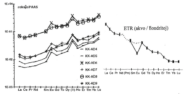 Sed por tia ĉi decido necesas unualoke disponi pri precize difinitaj enhavoj de ĉiuj ETR (aŭ minimume ĉiuj ekde La ĝis Nd). Ankaŭ estas rekomendinde apliki por la enhav-normigo la ardezon (PAAS aŭ NASC), en kiu la ETR-koncentritecoj ŝarĝus malpli granda svageco. Cele al ekzogena geoĥemio la ardezo estas pli reprezentiva ol la ĥondritoj.