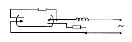 La cirkvito de la lumtubo (kaj de ĉiu ilo en kiu funkcias gasmalŝargiĝo aŭ arko) enhavas ankaŭ memindukan bobenon. (Nur ĉe alterna kurento.) Tiu necesas por bremsi la senbridan kreskiĝon de la kurento. Enŝaltante la tubon, speciala ŝaltilo fermas la cirkviton inter la du fadenoj, ili komencas ardi kaj emisii elektronojn. Poste la sama ŝaltilo malfermas la cirkviton, pro la ĉeso de la kurento, la bobeno produktas induktan tensio-impulson, kiu ekirigas la malŝargiĝon en la tubo. Dum la funkciado rapidaj elektronoj kunpuŝiĝas al neŭtraj gasatomoj, al vaporatomoj de hidrargo, faras el ili jonojn aŭ ekscitas ilin. La ekscititaj hidrarg-atomoj elradias ĉefe nevideblan ultraviolan radiadon (96 % 253,7 nm ondolonga radiado). Tiu ultraviola radiado ekscitas la fosforeskan tavolon, tial ĝi emisias videblan radiadon. La koloro de tiu radiado dependas de la materialo de la fosforeska tavolo. Iu ajn koloro estas estigebla per konvena elekto de la komponantoj de la fosforeska tavolo. Por ĝenerala lumigado oni uzas diversajn nuancojn de la blanka koloro.