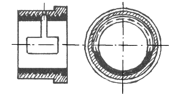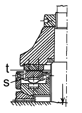 Pendiga lagro kun memstara ringo P kaj gvida enmetaĵo V estas prezentita sur bildo 286. Froto estiĝas sur ringa areo t.