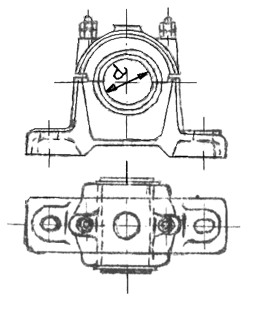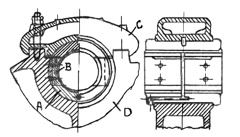 Bildo 283. Lagro de krankoŝafto kun duparta lagrokuseno | Bildo 284. Lagro de krankoŝafto kun kvarparta lagrokuseno |