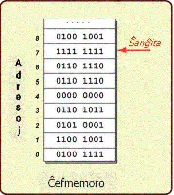 La procesoro skribis datenan bajton en ĉelon 7. La malnova enhavo de tiu ĉelo perdiĝis. La ĉefmemoro nun aspektas laŭ la ilustraĵo.