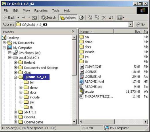 (La dosierujo jdk1.3.1 kiu aperas en la supra bildo restis en la fiksa disko el antaŭa instalado de malnova versio de Java.)