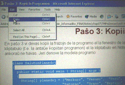 "Copy" (Kopii). La operaciumo kopias la programon en la kliptabulon
