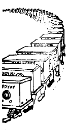 RAD.Tre bone! Do oni ĝuste tiel agas. Per loka heterodino (fig. 82), oni kreas oscilojn tiel, ke la diferenco inter ilia frekvenco de ondoj, kiujn kaptas la anteno, estu ĉiam egala al iu konstanta nombro, ekzemple 30,000. Do, se la frekvenco de iu sendstacio estas 1.500.000 (ondlongo 200 metroj), ni agordos la heterodinon je la frekvenco 1.470.000 aŭ 1.530.000. En ambaŭ okazoj la kurento rezultanta post interferenco havos la frekvencon 30.000. Tiu ĉi meza frekvenco estas jam oportune amplifebla. Ni povas fari por ĝi tri- eĉ kvarŝtupan mezfrekvencan amplifikatoron. kies resonancaj cirkvitoj povas ja unufoje por ĉiam esti bone agorditaj je la meza frekvenco. Post tiu ega amplifado en mezfrekvencaj ŝtupoj la kurento estas detektata kaj la rezultanta malaltfrekvenca kurento povas ankoraŭ esti amplifita. Ankaŭ la altfrekvenca kurento povas esti amplifita antaŭ la frekvencŝanĝo (fig. 82).