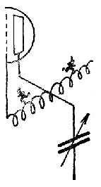 RAD.Mi ankaŭ tion kredas... Do, vidu, por klarigi al vi la aferon ni analizu pli detale, el kio konsistas tiu ĉi malutila efiko de la anodkrada kapacito. Vi scias ke, inter la finoj de l' anoda oscilcirkvitoj, kiam ĝi estas agordita je la ricevata ondo, kreiĝas alterna tensio. Dezirinde tiu tensio devus esti transdonita per malgranda kupla kondensatoro nur al la krado de la sekvanta lampo. Sed alia kapacito, ĝuste tiu malutila, kiu ekzistas inter krado kaj anodo, permesas al tiuj tensivarioj transdoniĝi returne al la krada cirkvito. Estiĝas kapacita reakcio, kreanta la memnaskajn oscilojn.