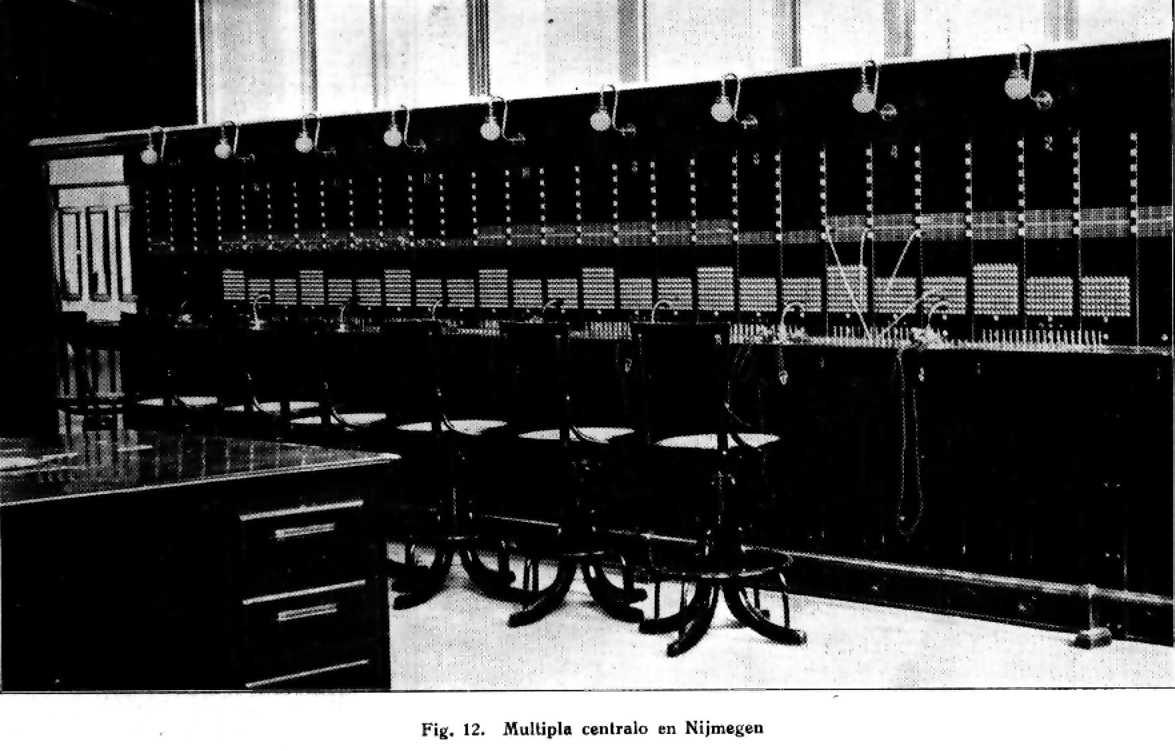 La figuro 12. donas ideon pri la aspekto de moderna centralo de la mansistemo kun centra baterio. La montrata centralo (en Nijmegen, Nederlando) estas aranĝita laŭ iom alia sistemo ol la ĵus priskribita. Por ne tro multe eniri en detalojn, ni ne priskribos ĝin.