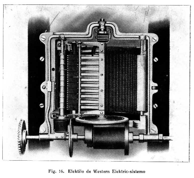 La elektiloj, kies specimenon montras la figuro 16., havas ne malpli ol 200 kontaktojn. Tio komprenigas, ke ne estas eble, ke la sama decimala sistemo estu uzata kiel en la sistemo de Stowger. La Western Electric-sistemo estas tiurilate multe pli komplika. La impulsoj, kaŭzataj de la interrompoj de la fluo en la aparato per la disko, ne tuj movas la elektilojn, sed ili estas registrataj de aro da ŝaltiloj, kiujn oni nomas pro tio registro. La registro kvazaŭ tradukas la impulsojn de la decimala sistemo kaj ŝanĝas ilin en formon, en kiu ili povas movi la elektilojn.