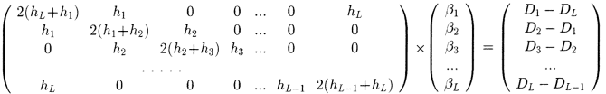 | y'''(xj)=6Bj3=6(βj+1−βj/hj, j=l…L−l |