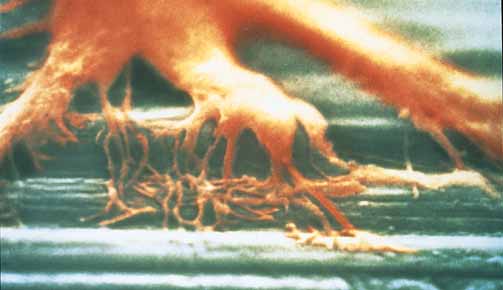 En kulturo, ostoblasto ĉirkaŭpremas titanan ŝraŭbon.