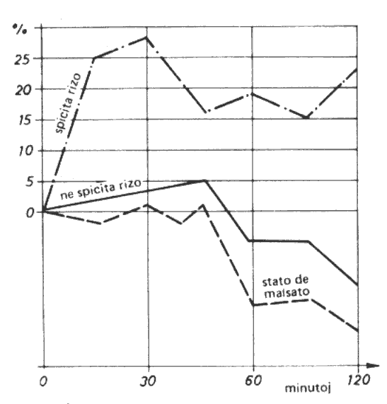 Fig. 2 prezentas la pligrandiĝon de korvolumeno dum la konsumado de spicita rizo kompare kun tio de la ne spicita.