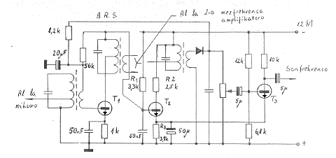 Se sekve de A.R.S. (® Aŭtomata Regulado de Sentiveco - en la angla: AGC) al la aparato ne alvenas signalo, la bloko T1 de mezfrekvenca amplifatoro funkcias per maksimuma amplifo. Sekve de maksimuma konektilkurento de T1 ĉe la rezistilo R1 estiĝas granda tensio. Tiu ĉi tensio agordas la pretension de la bezo de T2. La grandon de trafluanta kurento en T2 difinas la valoro de R2. Se ni ŝanĝadas la rezistilon R2 uzante ekz. reostaton tiel, ke la kurento trafluanta en T2 donu pli grandan tension ĉe R3 ol la pretensio de bezo de T3, tiam la transistoro T3 fermiĝos. Do ĉe la elirejo de ricevilo ne estas signalo - kaj la laŭtparolilo silentos.