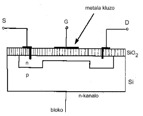Se inter la kluzo (G) kaj kanalo estas ne p-n fermotavolo, sed malvasta izoltavolo, la enira rezistanco superas eĉ 1012 omojn (vidu fig. 8.)