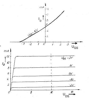 Sur fig. 6. ni vidas la karakterizaĵojn de PN-FETo (jFET), kaj sur la figuro 7. estas la teoria skemo de altfrekvenca amplifatoro kun FETo.