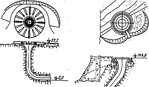 Fig. 4. La aranĝo proponita de mi de la inundo-funelo kaj ŝakto en la monta deklivo |