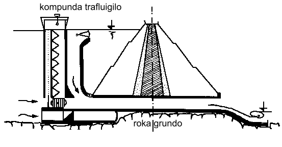 Pri la kompunda trafluiga konstruaĵo indas diri iom pli. Nepre nemalhavebla konsistaĵo de baraĵo devas esti instalaĵoj ebligantaj absolute sekure konduki la akvon de la rivero tra la valfermaĵo — la baraĵo. Ja la rivero konstante alfluas en la baraĵlagon; aliflanke, la akvoprovizo de la konservejo devas esti elfluigata laŭ regebla reĝimo. Tamen la trafluigo okazas el diversaj kaŭzoj, kiuj metas diversajn, iam kontraŭdirajn, postulojn pri la elfluiga instalaĵo. Tial oni kutime plenumas la diversajn postulojn per apartaj konstruaĵoj.
