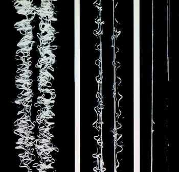Streĉo de ŝpinfadeno al 1, 5 kaj 20-obla longo. |
